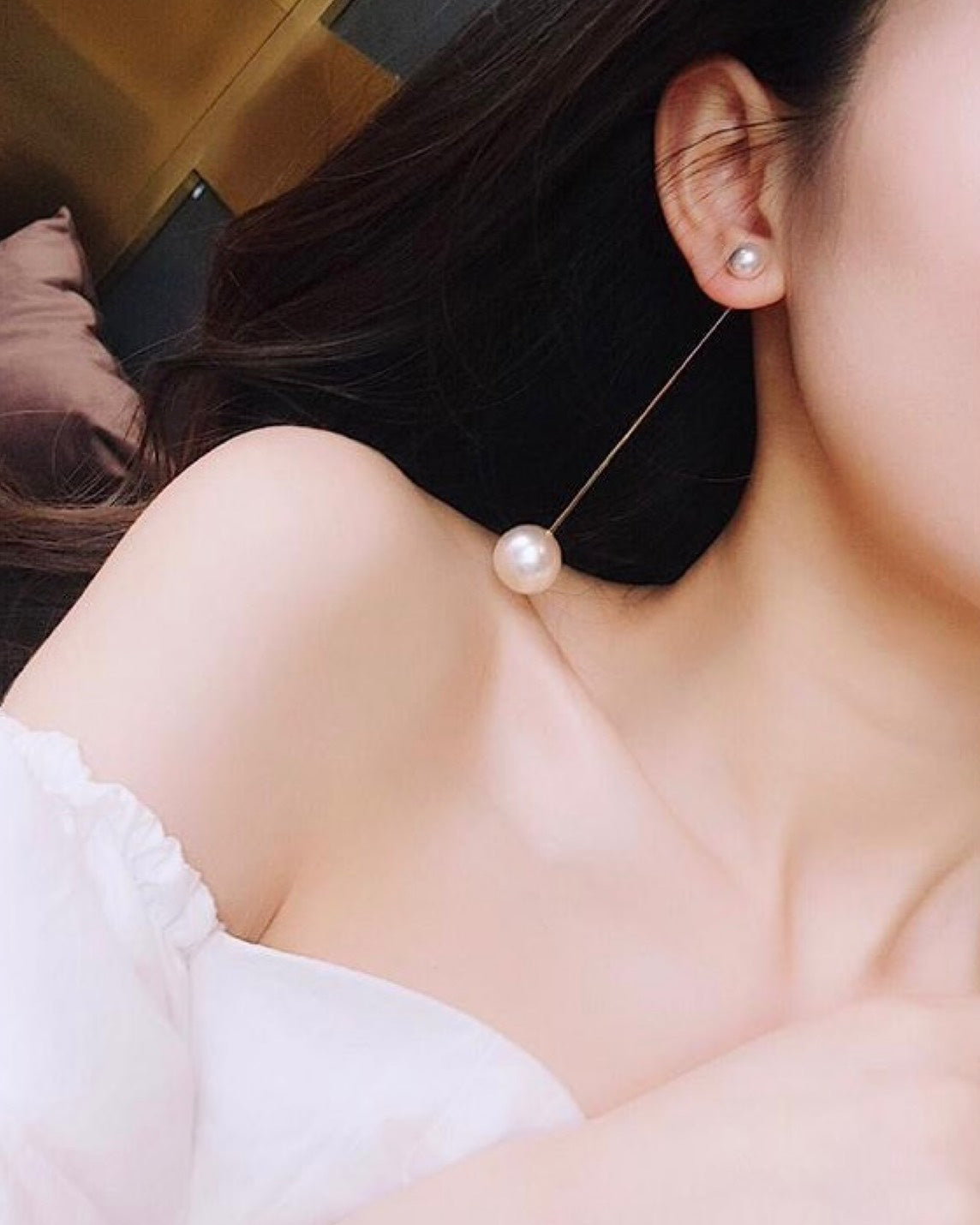 上質な艶感パールと、繊細なチェーンが美しく揺れるロングイヤリング。